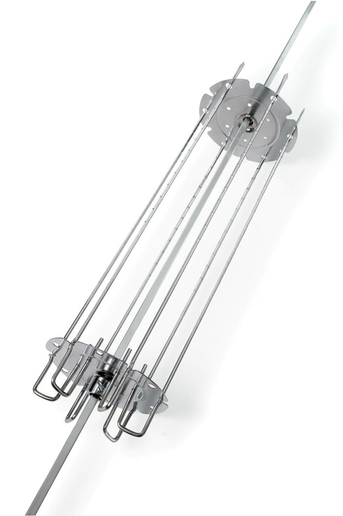 Bestrijk uw voedsel gemakkelijk met smaakvolle sauzen terwijl het ronddraait. Het verchroomd plaatstalen oppervlak is gemakkelijk schoon te maken en gaat lang mee. Schuif het shish-kebab wiel op uw draaispit en vul die spiesen.