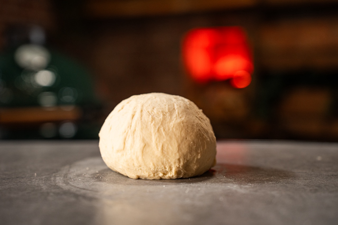 Tijd om het naanbrood te maken! Haal het deeg uit de koeling en deel het deeg in vieren. Daarna rol je dit uit met de deegroller, het hoeft niet perfect rond te zijn. Maar wel zo dun mogelijk en regelmatig even draaien en keren. Gebruik niet te veel bloem, maar een klein beetje. Wanneer je te veel bloem toegevoegd, wordt het deeg namelijk te droog. Herhaal deze stappen ook voor de overige 3 stukken deeg. De knoflookboter is klaar en kan uit de BBQ worden gehaald. Je kan hier nog wat vers gesneden koriander aan toevoegen en deze koriander kan je ook nog aan de saus toevoegen. De plakken deeg kunnen nu op de pizzasteen! Haal het naanbrood er hierna uit en kwast deze in met de knoflookboter.