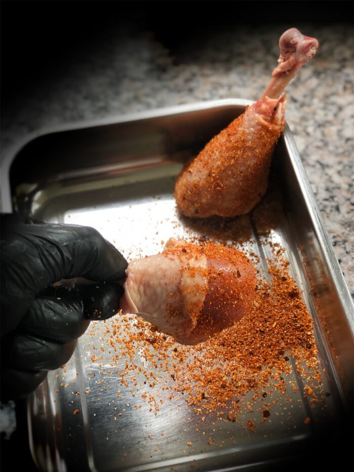- Voorzie de kip onder en boven de huid van één of twee lagen lekkere rubs.