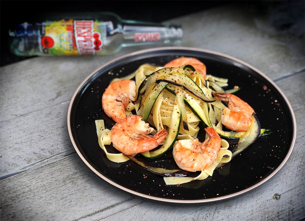 Gamba’s van de zoutsteen met groenten tagliatelle