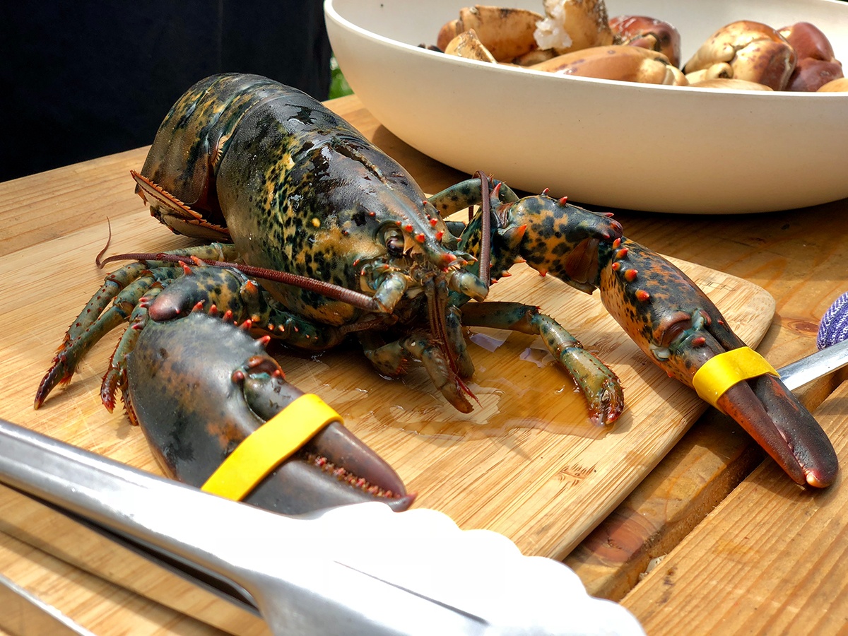 - Besprenkel de kreeft met een beetje citroengras olijfolie (verkrijgbaar in het BBQ Experience Center, niet online) en rasp van de limoen.