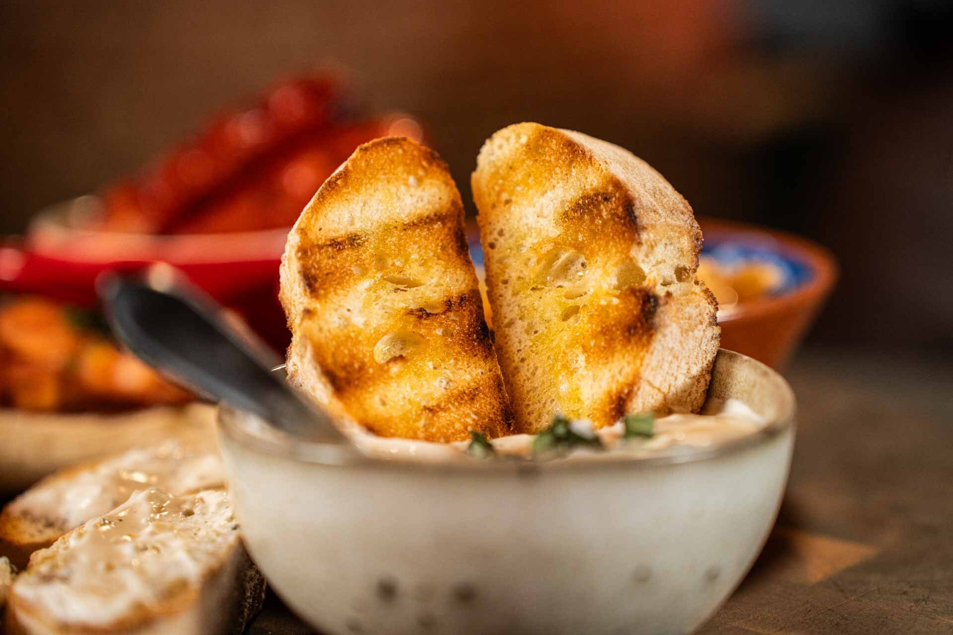 De aioli dip is een klassieker onder de dips. Voeg twee eetlepels van deze dip toe aan de yoghurt, crème fraîche en 1 eetlepel water. Roer het geheel goed door voor een zelfgemaakte aioli dip! Serveer deze met heerlijk gegrild stokbrood.