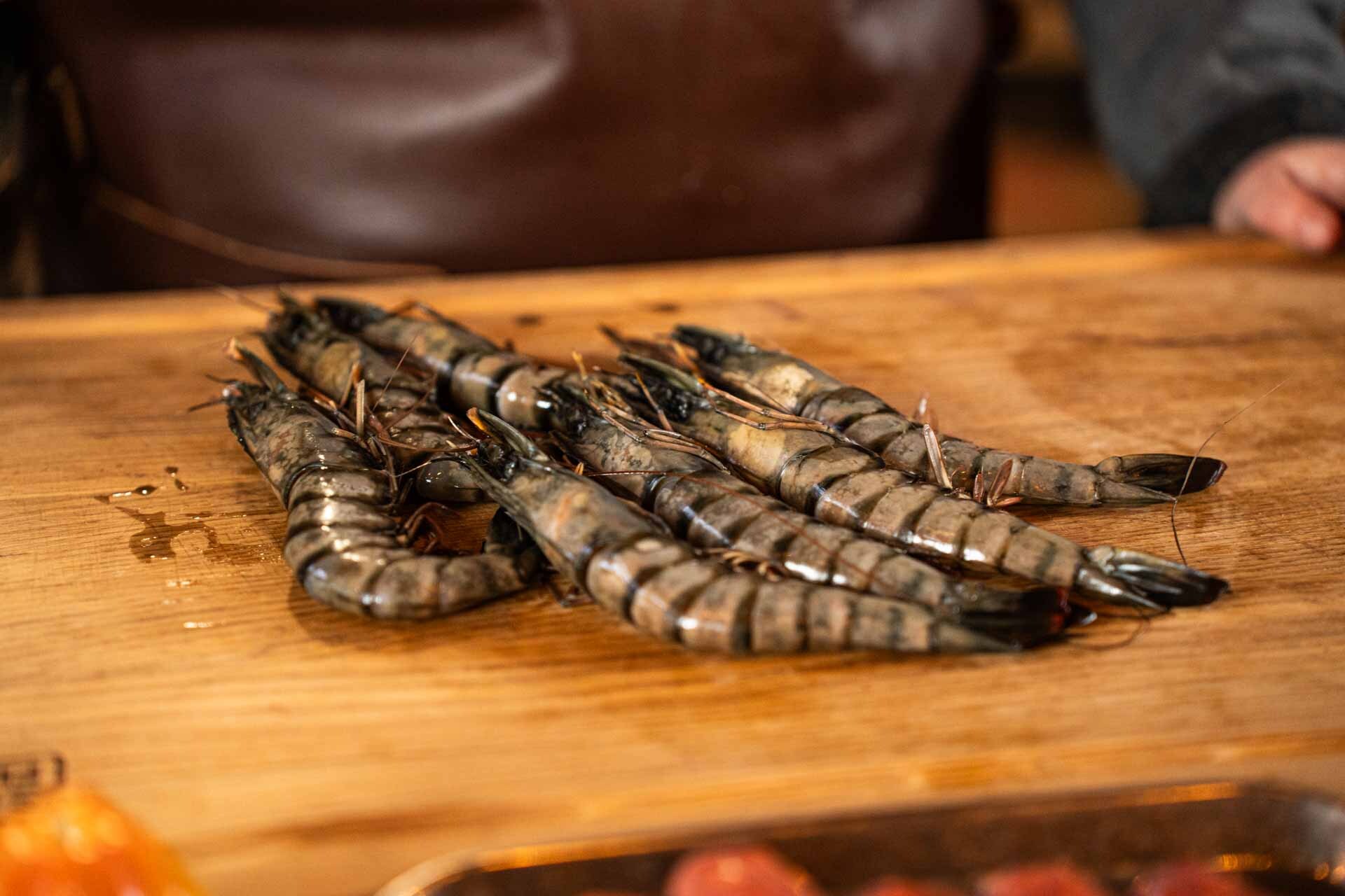 Een heerlijk gerechtje waar je wel een sterke knoflookgeur van krijgt. Maar als iedereen ervan geniet, is dat zeker geen probleem. Begin met het pellen van de gamba door de kop naar achteren te trekken en met twee vingers achter de kop, dan trek je als het ware de hele kop mee. Hetzelfde doe je met de staart. Vervolgens doe je je vingers achter het huidje en trek je het huidje zo los. Alle gamba’s hebben natuurlijk ook een darmkanaal, deze wil je eruit hebben. Snijd met een mes vanaf het midden naar beneden (niet helemaal door) en verwijder het kanaal.
