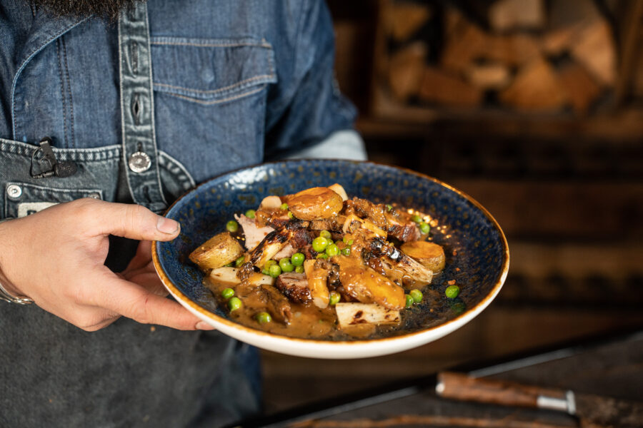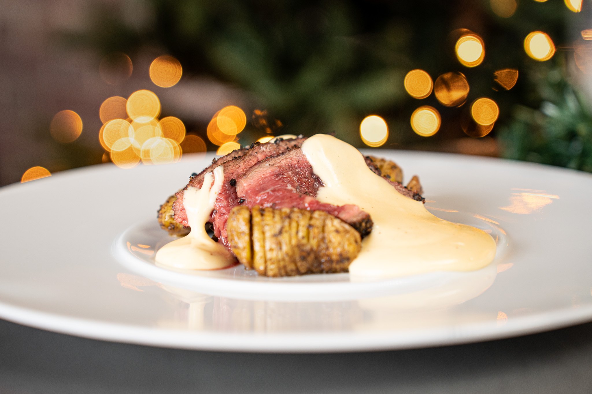 • Runder presa met gegaarde paddenstoelen en gerookte bearnaisesaus