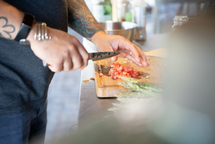 Zelf doen staat in onze masterclasses centraal. We geloven dat actief bezig zijn in de keuken de beste manier is om te leren. Bij ons bereid je zelf alle gerechten, in plaats van dat je in groepjes verdeeld wordt en elk groepje een ander recept maakt. Met 5 uur de tijd en 4 gerechten om te bereiden, kunnen we heel wat behandelen en leer je enorm veel!